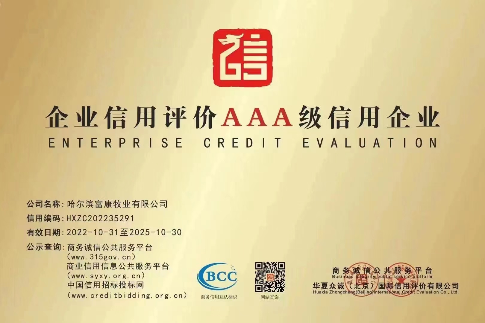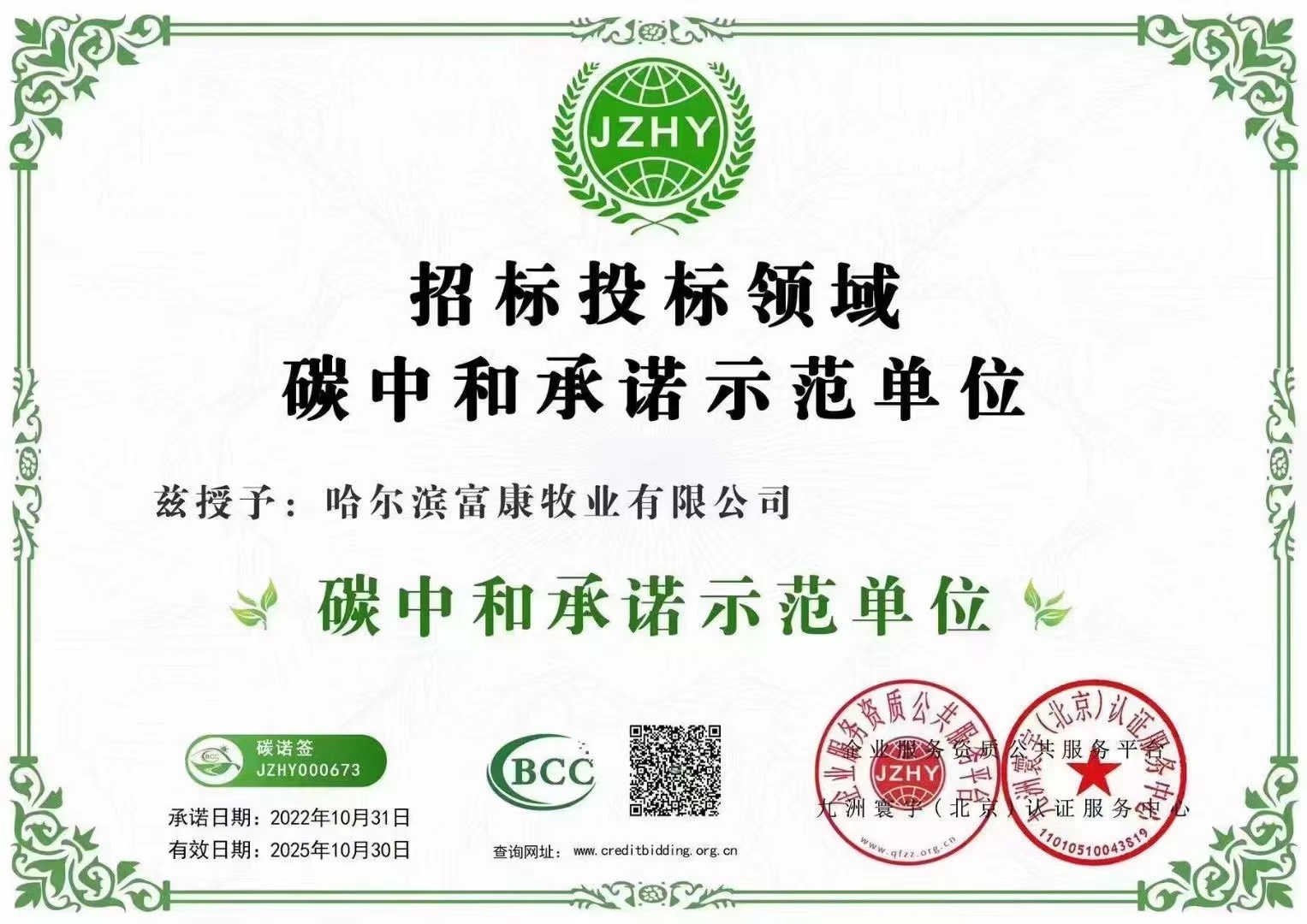 熱烈祝賀:哈爾濱富康公司,榮獲黑龍江省“專、精、特、新”中小企業 企業信用評價AAA級信用企業 招標投標領域碳中和承諾示范單位